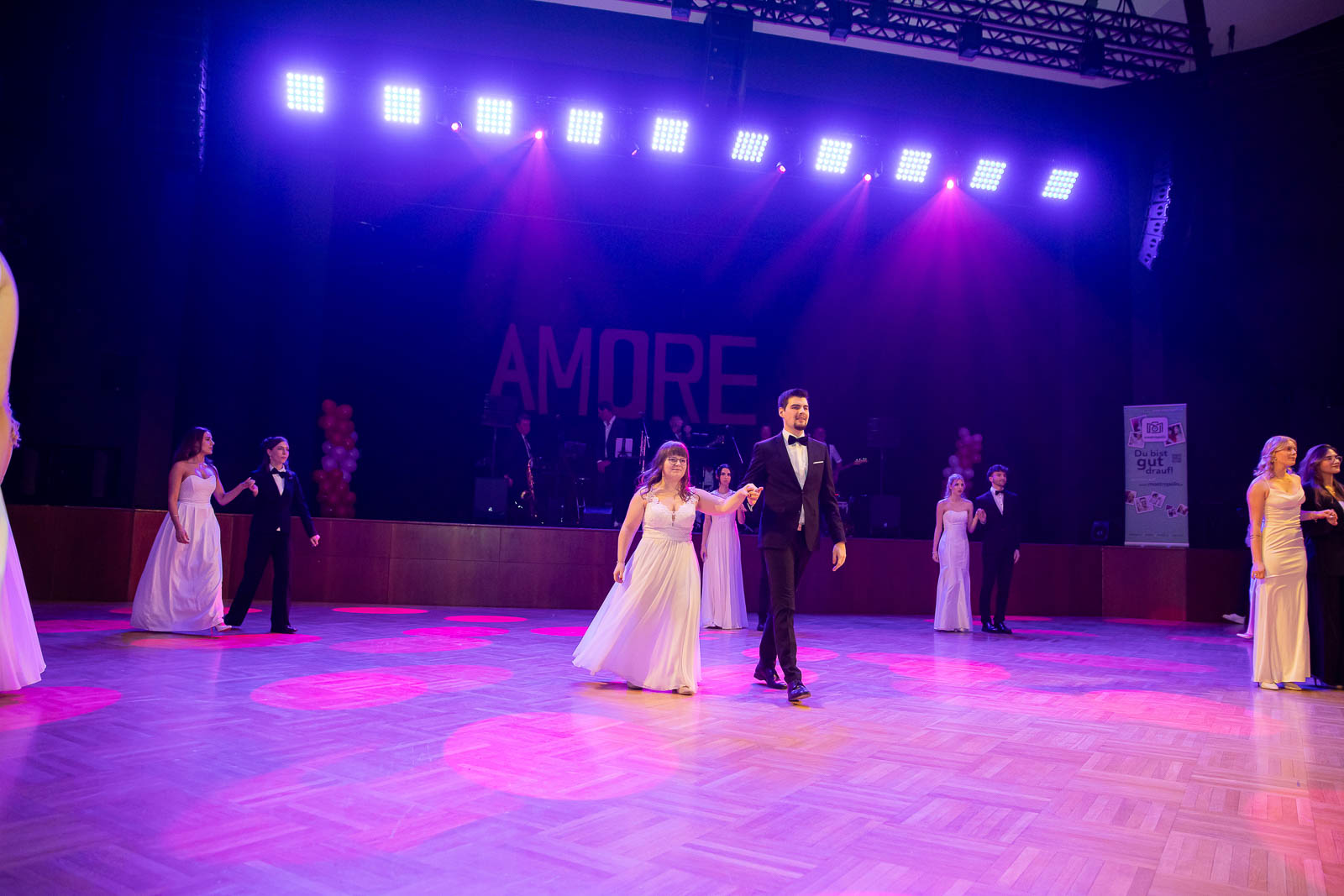 Eine wahrhaft romantische Ballnacht erlebten die Besucher des diesjährigen Abschlussballs der HAK/HAS Amstetten, der unter dem Motto „HAKamore Liebe im Soll – Matura im Haben“ stand. Passend zum Valentinstag erfüllten Emotionen und Romantik den Ballsaal, besonders während der von Melanie Mock choreografierten Balleröffnung. Schulsprecherin Sarah Ebner hielt gemeinsam mit ihren Stellvertretern Anton Schmalzl und Emma Welser die Eröffnungsrede. Auch Schulleiter Mag. René Bremböck begrüßte die Ballbesucher.