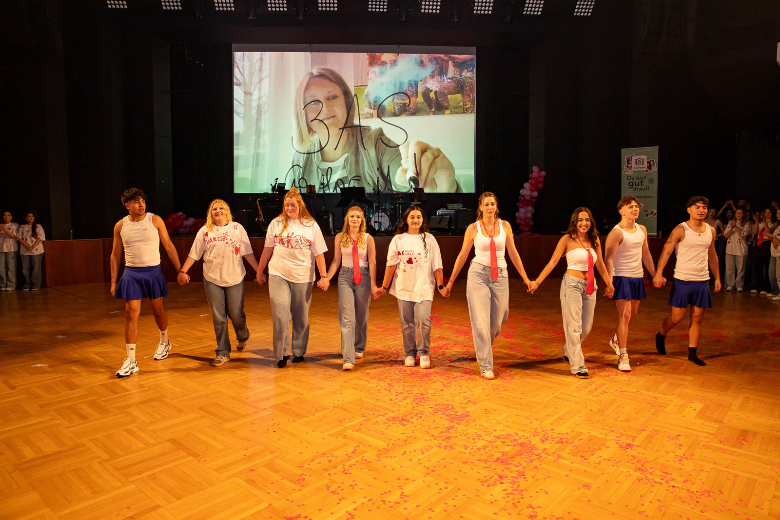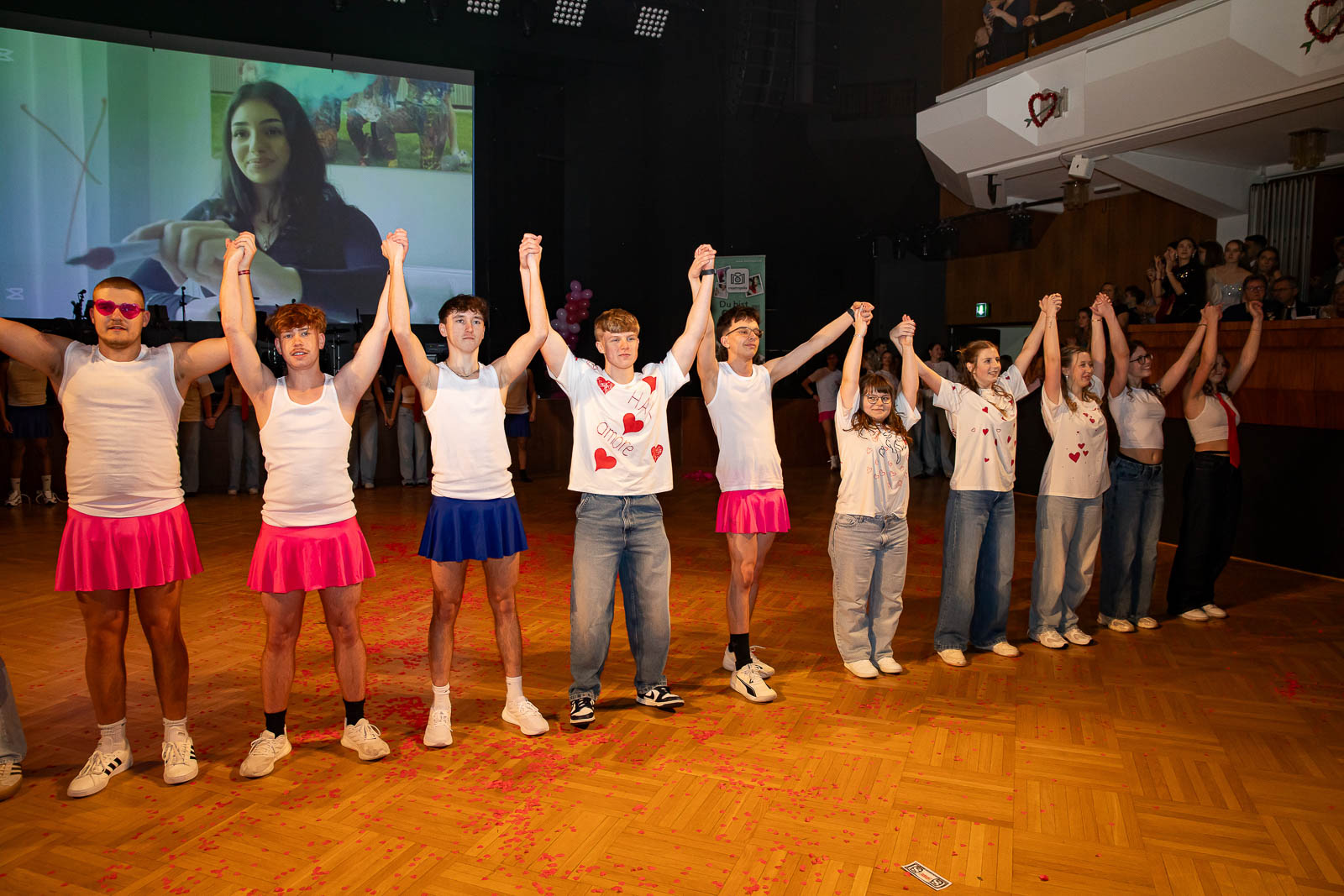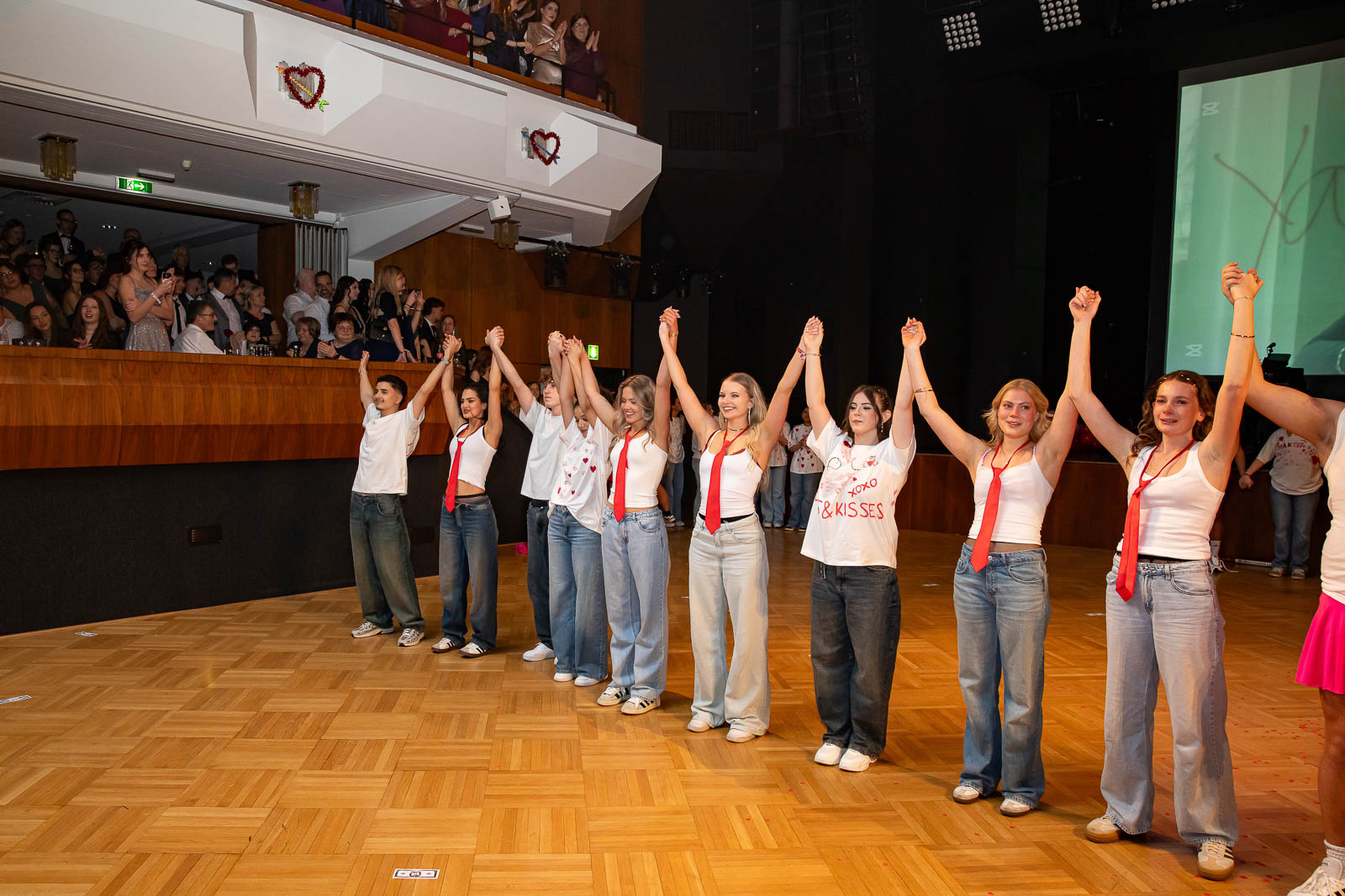 Schlag Mitternacht gehörte die Bühne ganz der Liebe: Die Schülerinnen und Schüler der Abschlussklassen präsentieren eine herzerwärmende Valentinstags-Show, in der sie mit Engagement, kreativen Choreografien, mitreißender Musik und originellen Videoeinspielungen für einen unterhaltsamen Höhepunkt des Abends sorgten. Choreografiert und einstudiert wurde die Mitternachtseinlage wurde von Sophia Balhi.