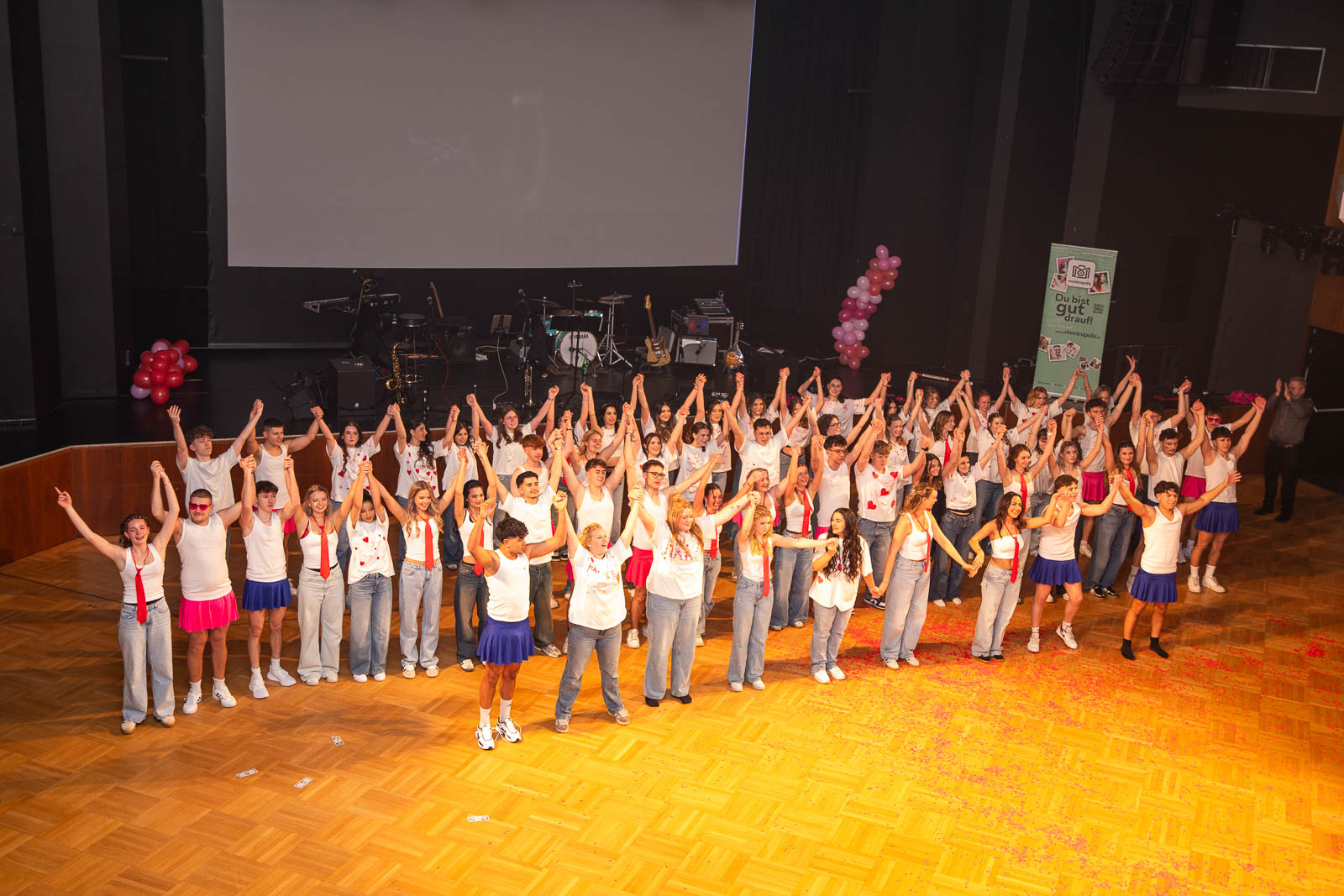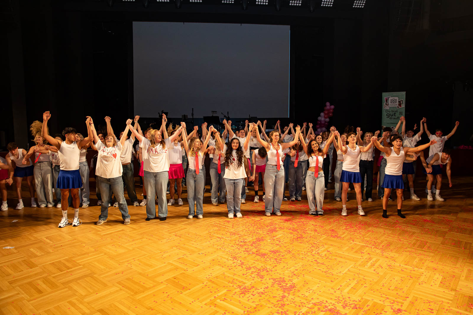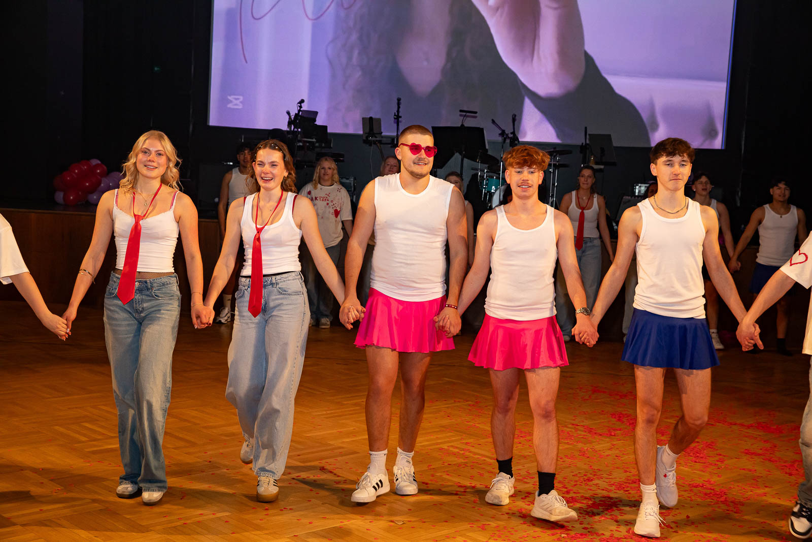 Schlag Mitternacht gehörte die Bühne ganz der Liebe: Die Schülerinnen und Schüler der Abschlussklassen präsentieren eine herzerwärmende Valentinstags-Show, in der sie mit Engagement, kreativen Choreografien, mitreißender Musik und originellen Videoeinspielungen für einen unterhaltsamen Höhepunkt des Abends sorgten. Choreografiert und einstudiert wurde die Mitternachtseinlage wurde von Sophia Balhi.