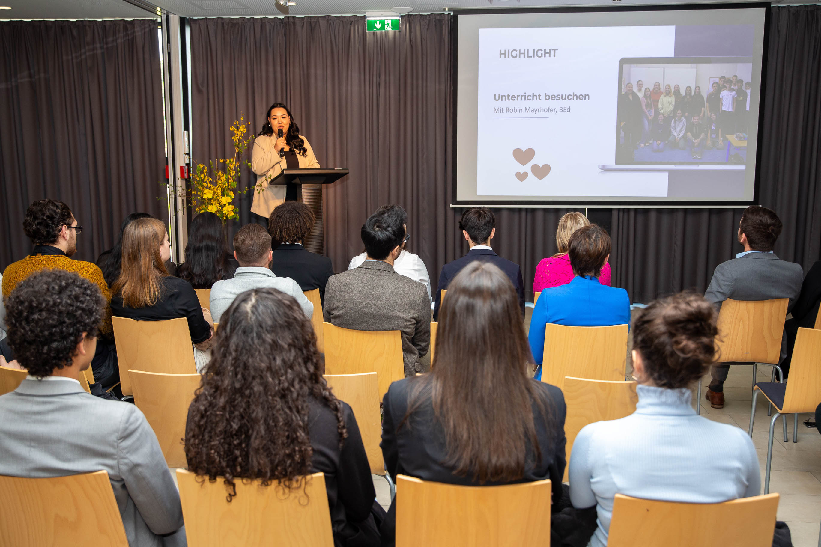 Unter den Zuhörern waren auch Vertreter der Wirtschaft sowie stolze Eltern, die gespannt waren, die Fortschritte und Erfolge ihrer Kinder zu sehen. Die Schülerinnen und Schüler präsentierten nicht nur ihre Arbeit, sondern reflektierten auch über ihre persönlichen Entwicklungen und Herausforderungen während ihres Praktikumszeitraums. Eine Schülerin berichtete beispielsweise von ihrem Praktikum in der Mittelschule und betonte die Bedeutung von Teamarbeit und Kreativität in diesem Bereich.