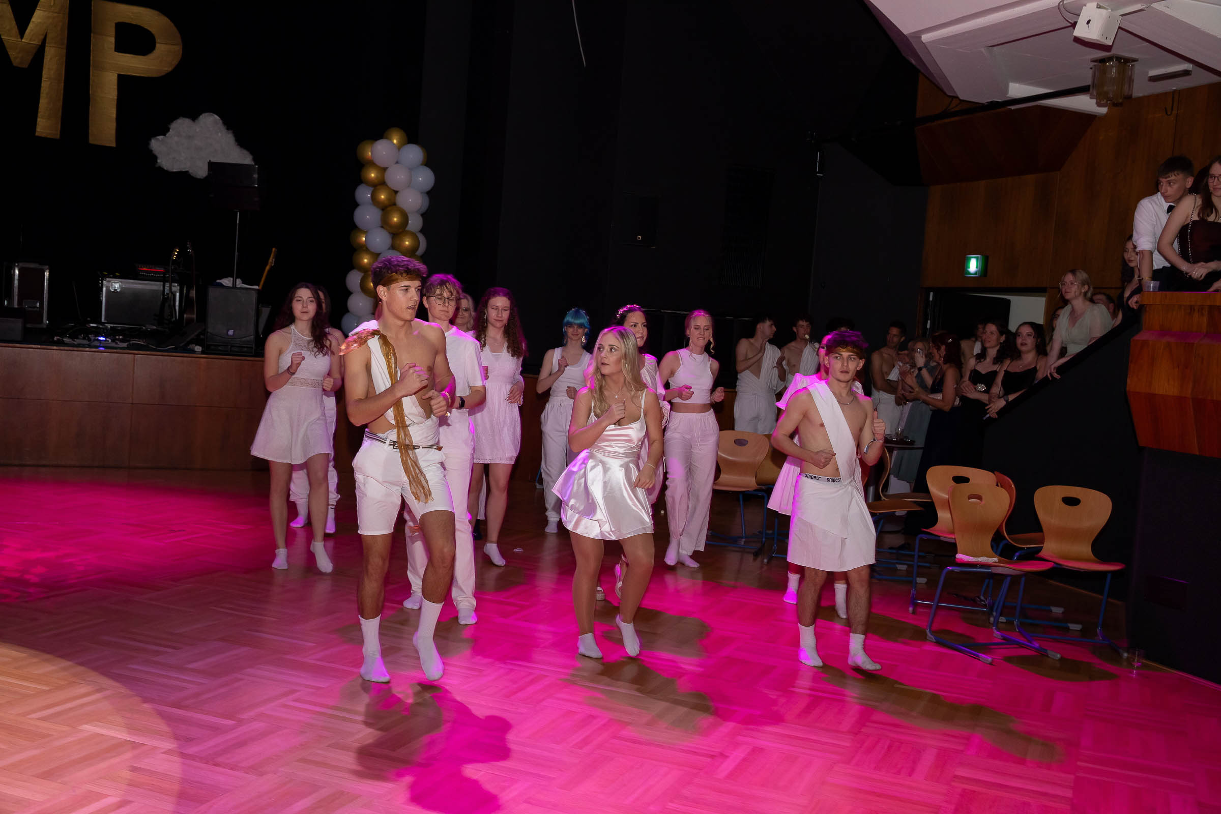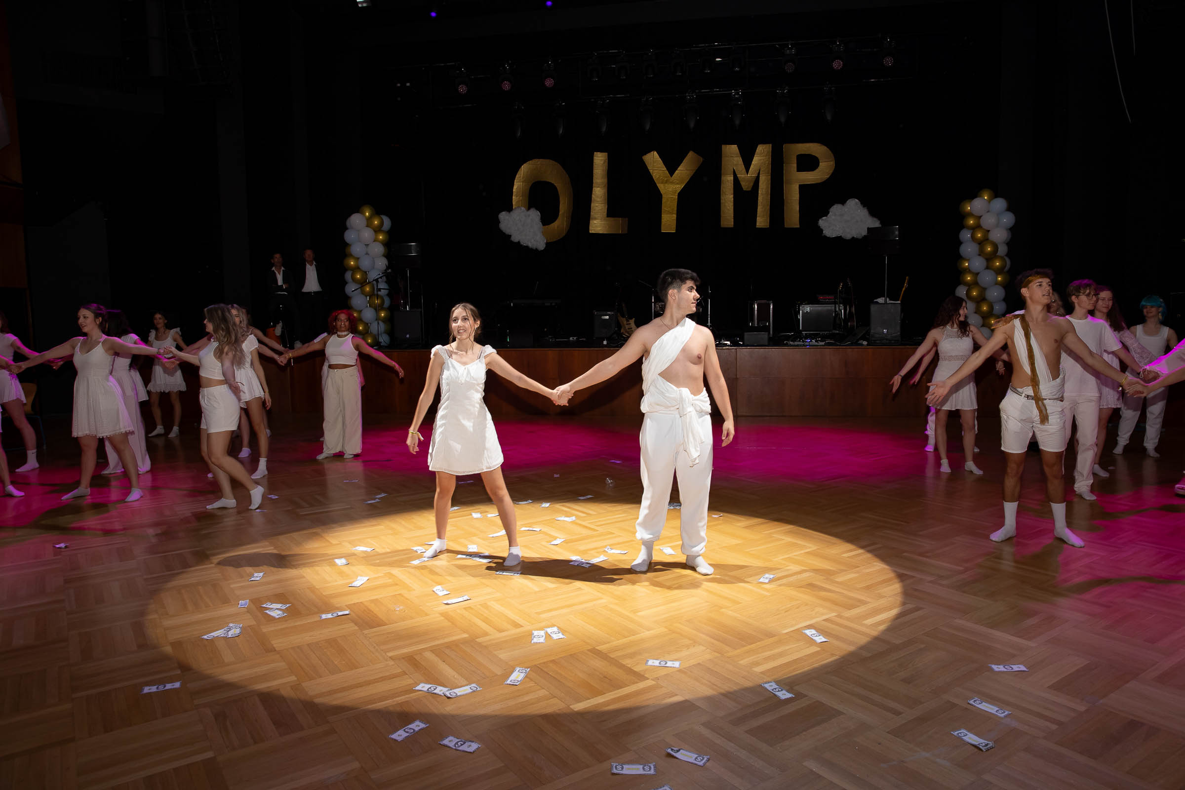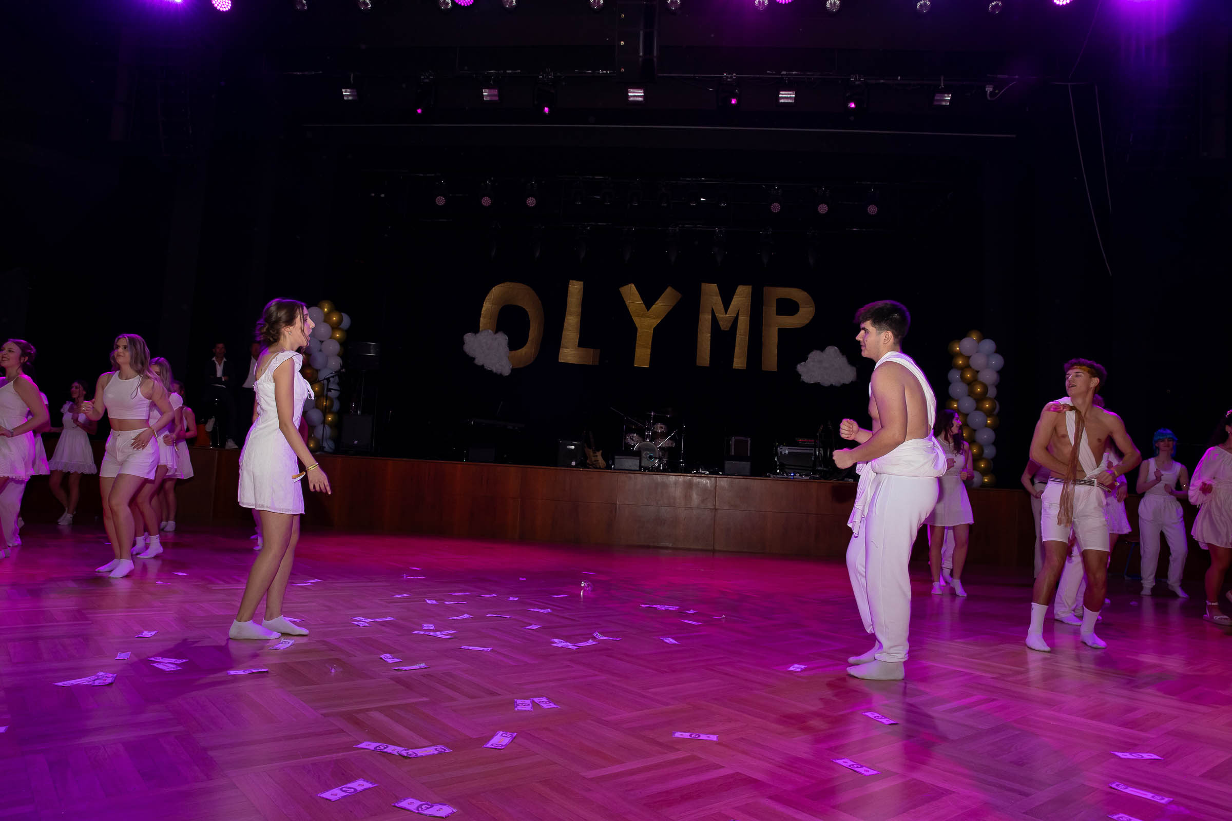 Danach hieß es Eintauchen in das antike Griechenland. In vielen, nach griechischen Göttern benannten Bars verwöhnten die 4. Klassen der Handelsakademie die Gäste mit Mixgetränken, Bier, guten Weinen oder Kaffee und Kuchen. Getanzt wurde im Ballsaal zur Musik der fantastischen „Crazy Teachers“, für die richtigen Party-Vibes sorgte DJ Zeus.