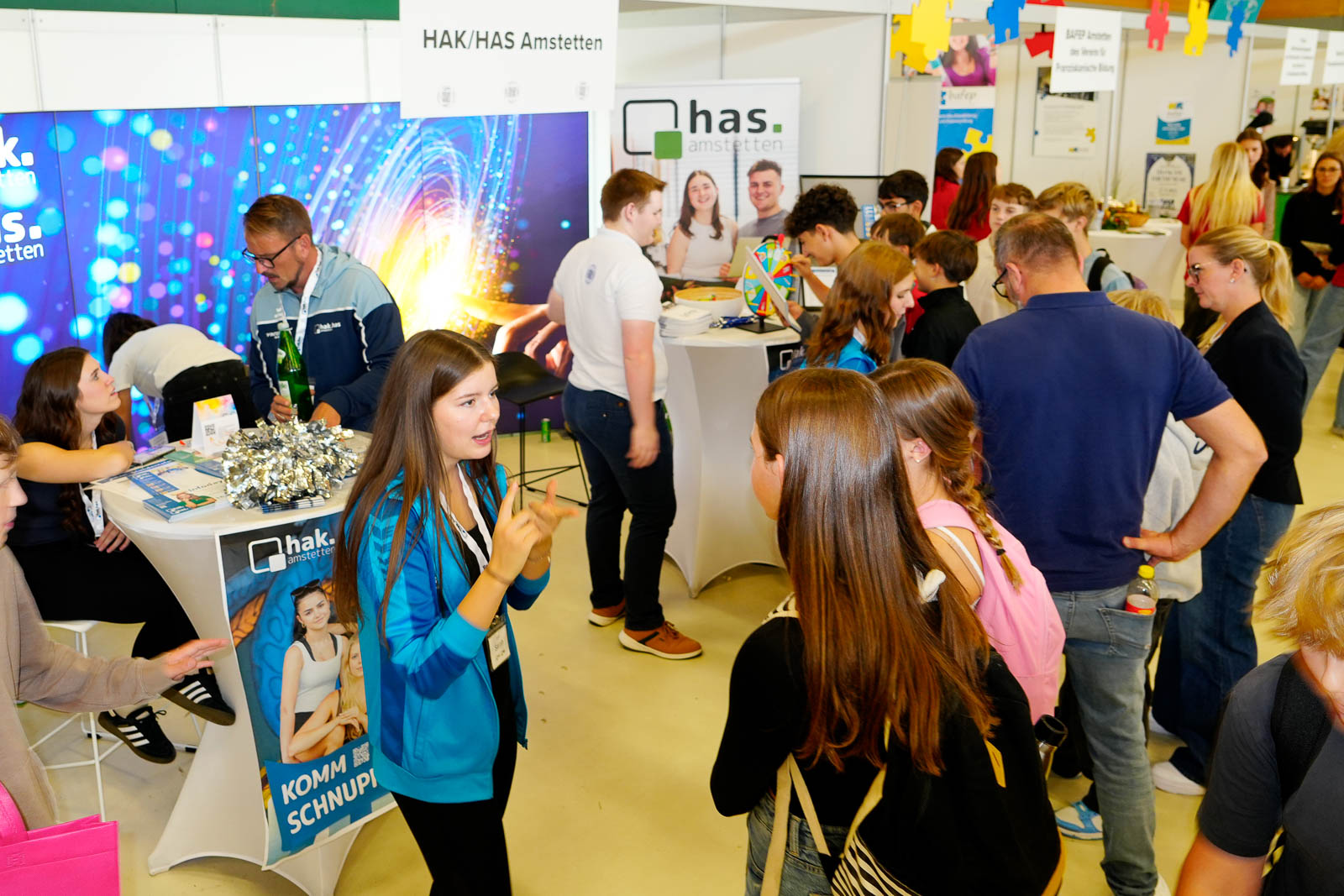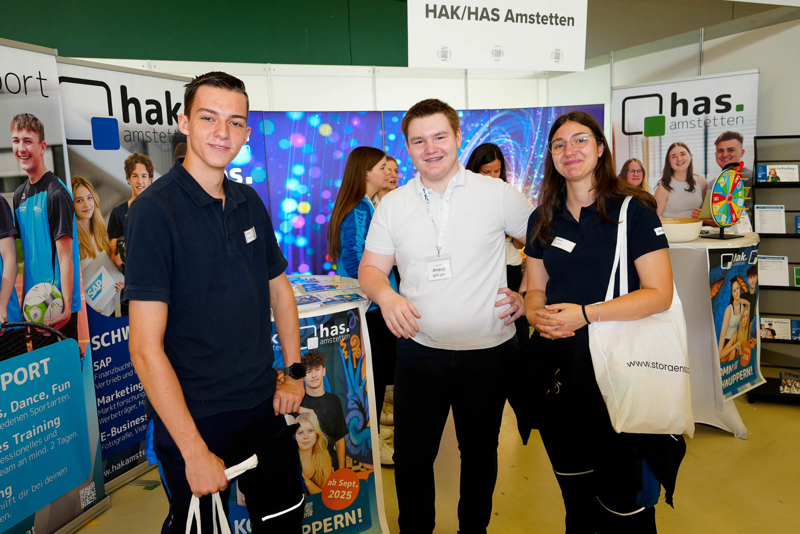 Die HAK/HAS Amstetten war heuer wieder auf der Messe in “Schule und Beruf” in Wieselburg vertreten Mit einem Glücksrad, Tanzaufführungen sowie Fußballtricks zogen unsere Sportler:innen viele Interessierte an den Messestand, der gemeinsam mit den Schülern und Schülerinnen des Schwerpunkts Kommunikationsmanagement und Marketing konzipiert worden war.