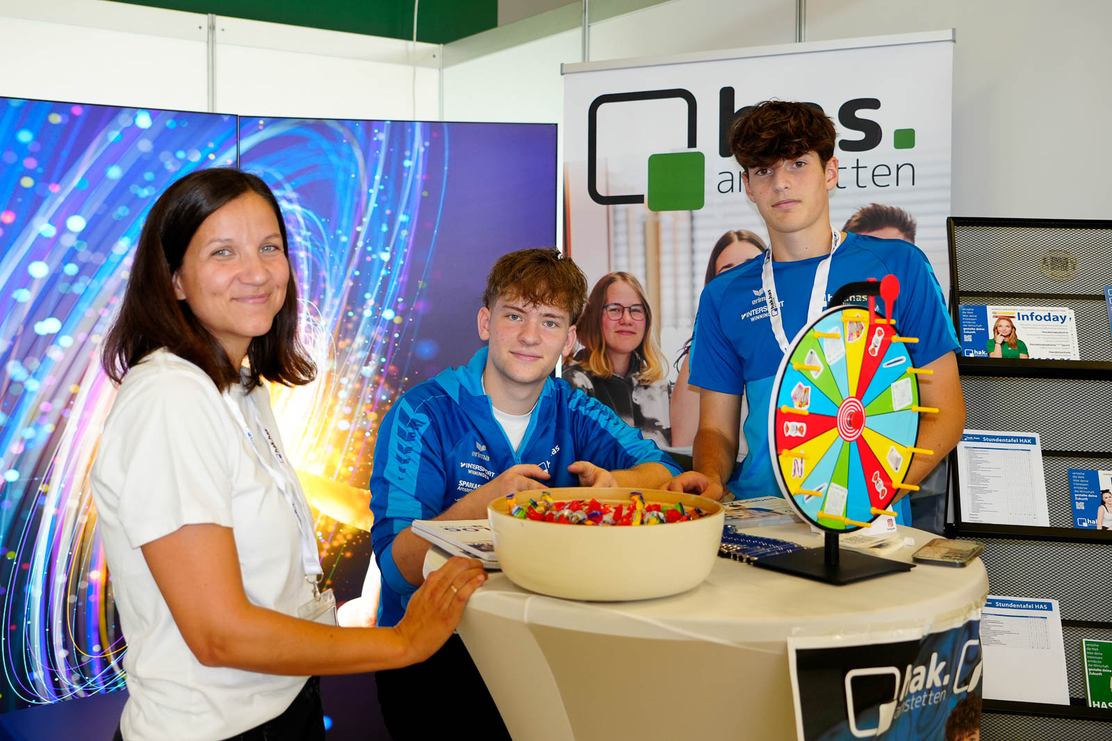 Die HAK/HAS Amstetten war heuer wieder auf der Messe in “Schule und Beruf” in Wieselburg  vertreten Mit einem Glücksrad, Tanzaufführungen sowie Fußballtricks zogen unsere Sportler:innen viele Interessierte an den Messestand, der gemeinsam mit den Schülern und Schülerinnen des Schwerpunkts Kommunikationsmanagement und Marketing konzipiert worden war.