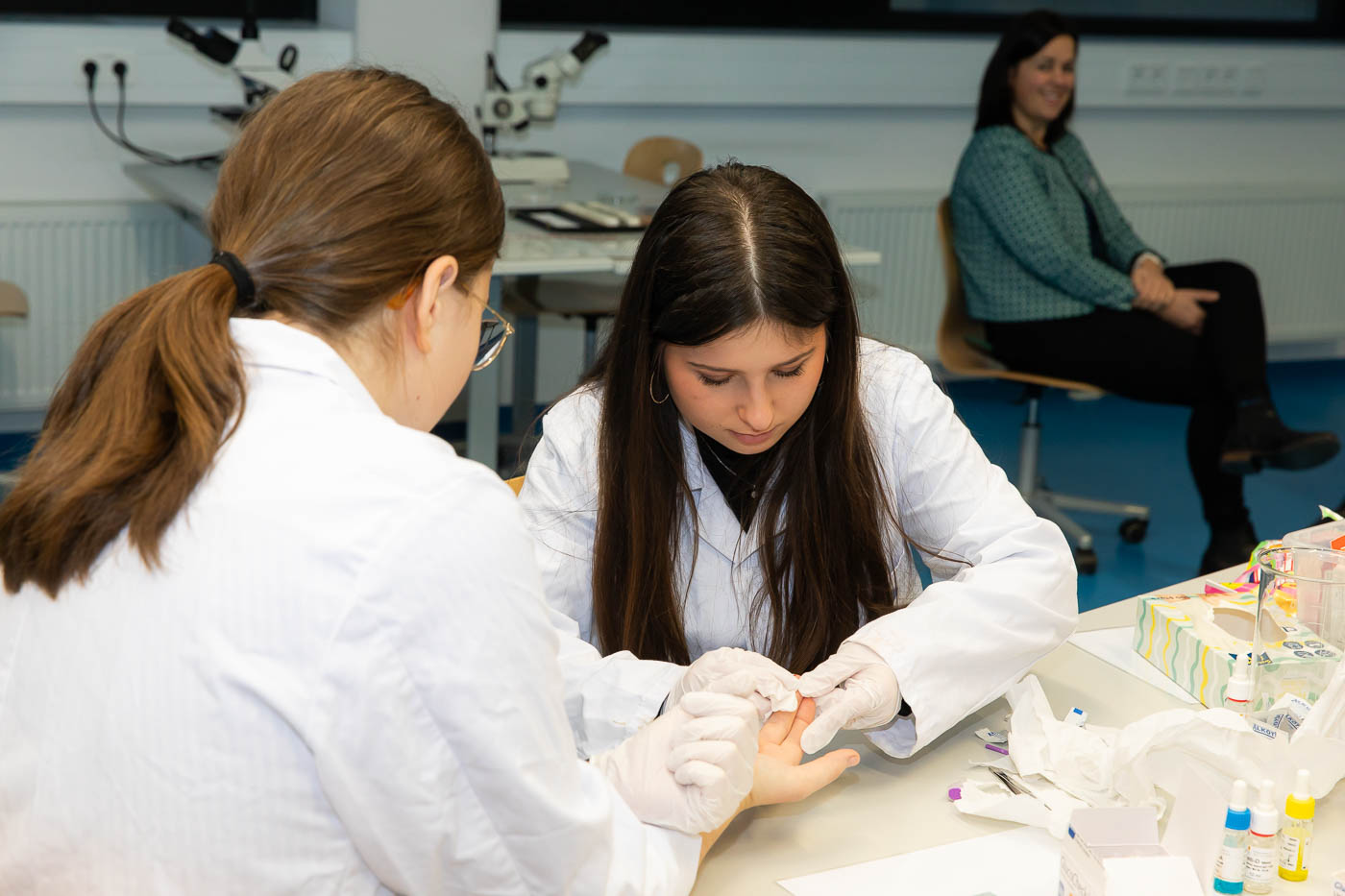 Lebendig präsentiert wurden auch allgemeinbildende Fächer wie Naturwissenschaften oder Sprachen. Das junge Publikum konnte Herz- und Augensektionen beiwohnen, sich die Blutgruppe bestimmen lassen, ein Video über die Sprach- und Kulturwoche in Riga sehen oder sich in Office Management ein eigenes Bild mittels KI gestalten lassen. Selbstgemachte Tapas und Plinis machten den Besuchern die Sprachen Russisch und Spanisch schmackhaft.
