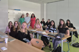Die Turnlehrerin und Volleyballtrainerin nahm an den Unterrichtsstunden in Bewegung und Sport sowie an Englischstunden von Frau Professor Gstettenhofer teil. Mit Interesse erkundigten sich die Schülerinnen und Schüler nach dem Schulsystem in Italien und erfuhren auch viel aus dem Unterrichtsalltag von Antonella di Cesare in ihrer Schule, die mit einer HTL verglichen werden kann. Gemeinsam stellten wir Vergleiche an und erfuhren jeweils viel vom anderen Land und seinem Schulsystem.