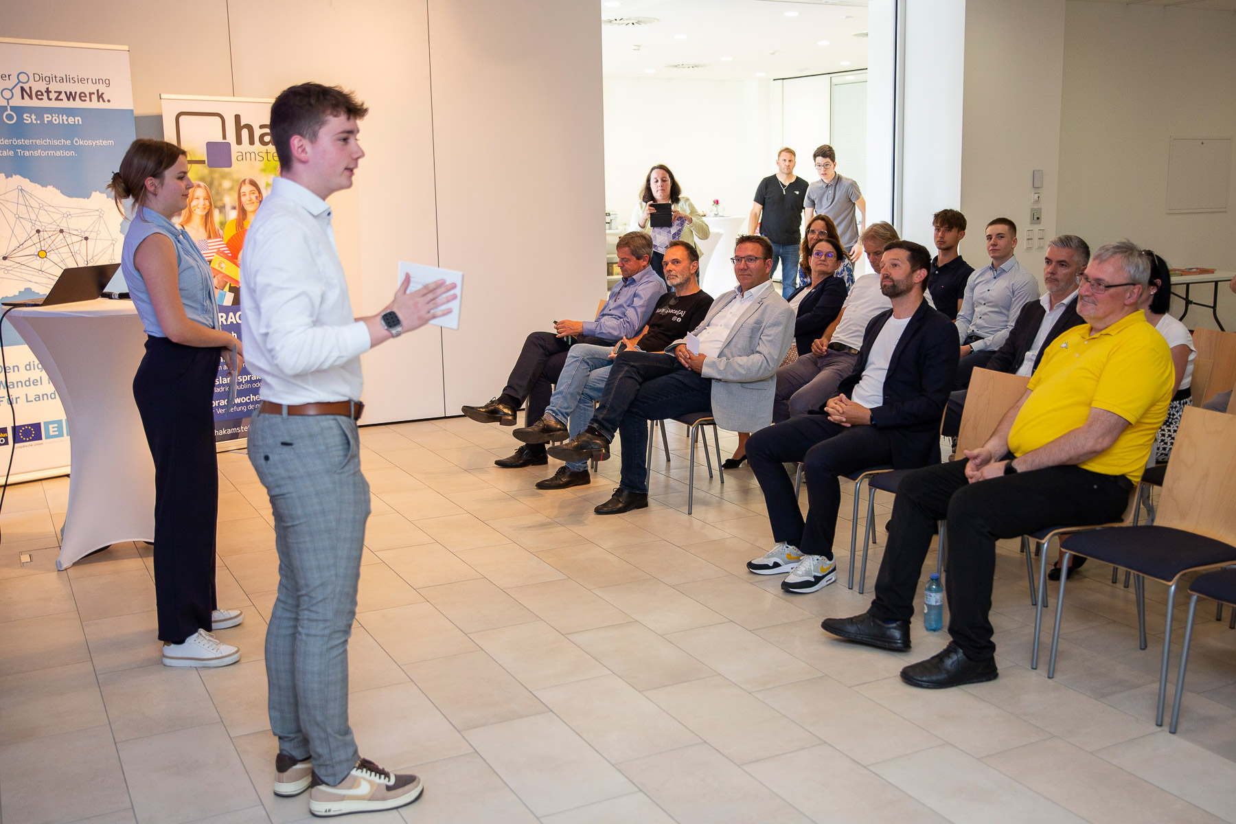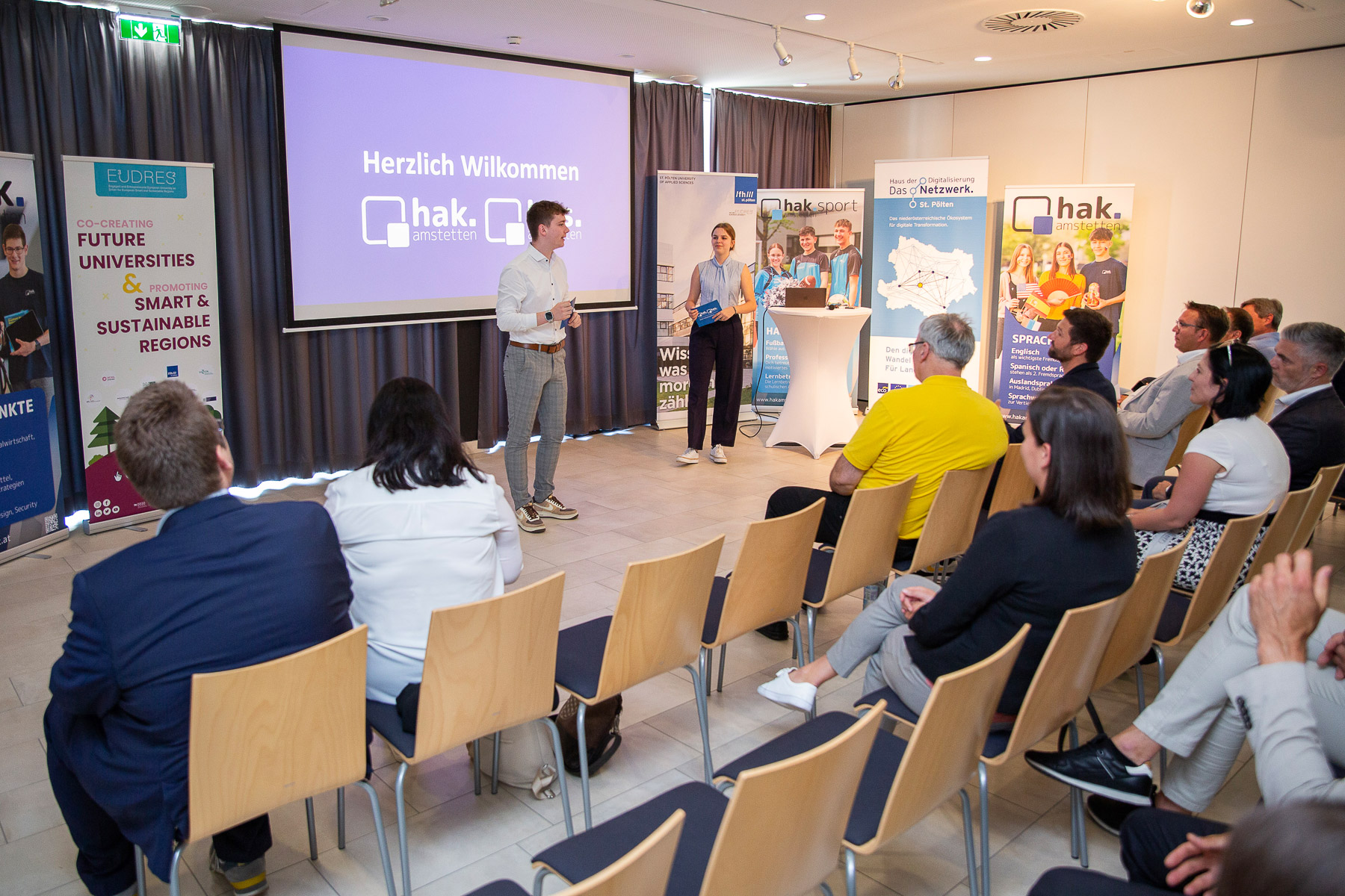 Im Rahmen der Veranstaltung präsentierte Bürgermeister Christian Haberhauer die wirtschaftliche Bedeutung der Stadt Amstetten in der Wirtschaft und gab einen Ausblick über die ökonomische Zukunft. Günter Sterlike erklärte die Arbeit des MakerSpace Amstetten, der den Raum für das Projekt zur Verfügung stellen wird. Ziel der Wirtschaftsraum Amstetten GmbH ist es, gemeinsam mit 14 Umlandgemeinden erfolgreich eine nachhaltige Zukunft zu schaffen.