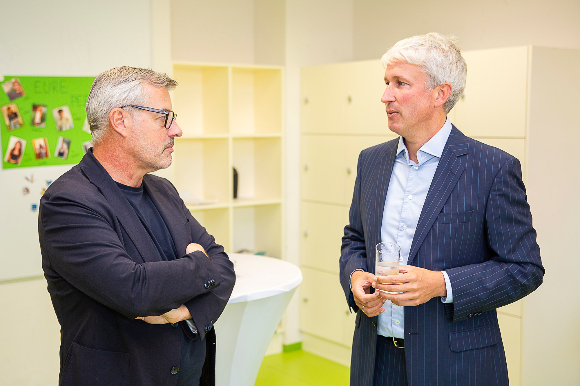 Eingeladen zur anschließenden Podiumsdiskussion waren Vertreter der heimischen Wirtschaft sowie Vertreter des Bildungsbereichs. Anita Keusch (Leiterin „Organisation und Unternehmensentwicklung“, Sparkasse Amstetten), Mag. Gerald Herbst (Geschäftsführer, Aon Austria GmbH), Mag. Andreas Krahofer (Head of Business Process Automation, Umdasch Group AG), Dipl.-Ing. Gunnar Hamann MSc (Bildungsdirektion NÖ, Schulqualitätsmanager, Fachbereich BMHS und Digitalisierung) sowie Mag. Helmut Wurzer (Lehrer und IT-Manager der HAK/HAS Amstetten) stellten sich den Fragen des Moderatorenteams Anna Mikesch und Fabian Ebner.